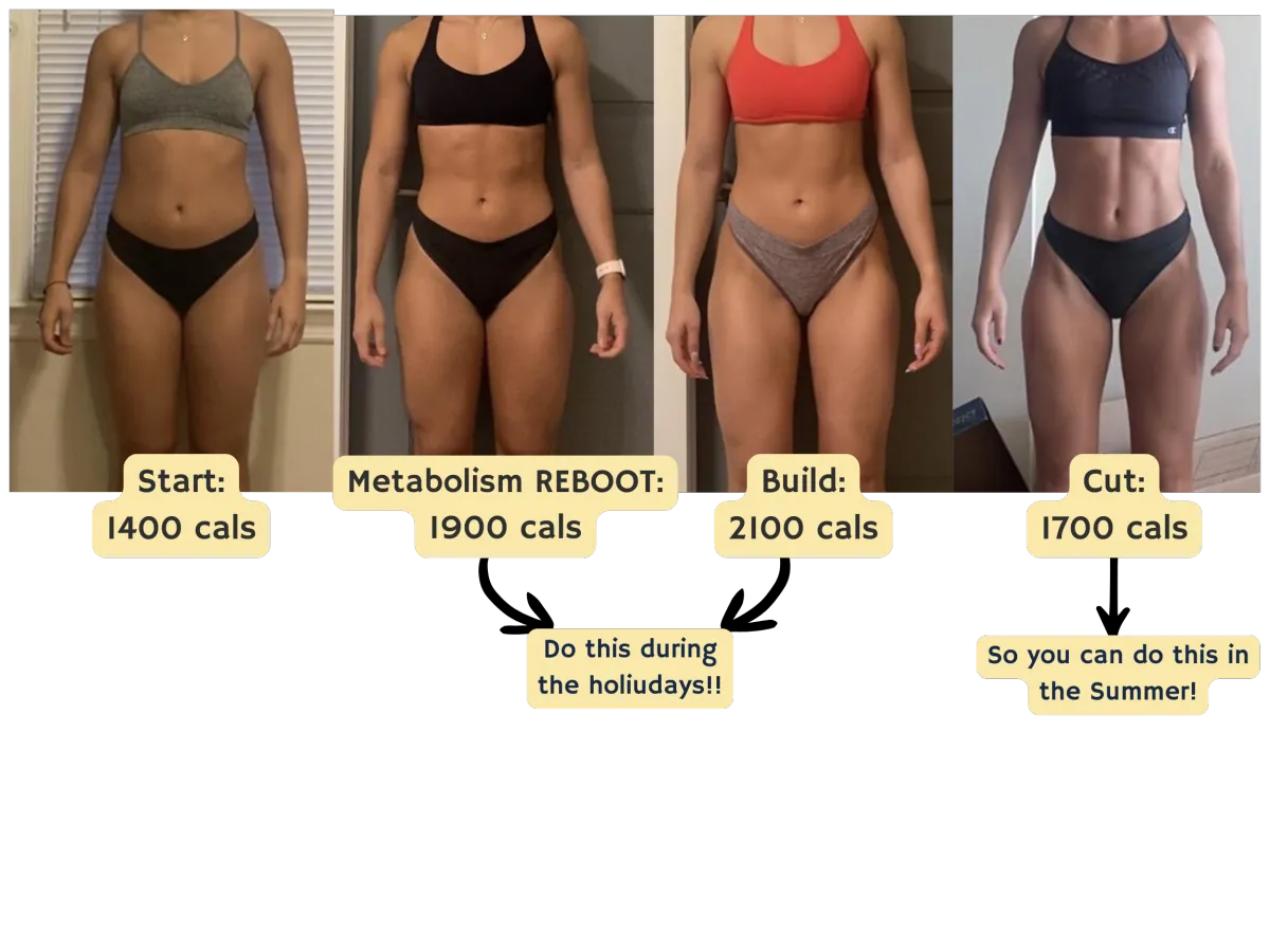 ✅ The Phases of Body Composition™ — cut, reverse, build — and why you can’t get toned without muscle (and muscle needs fuel).